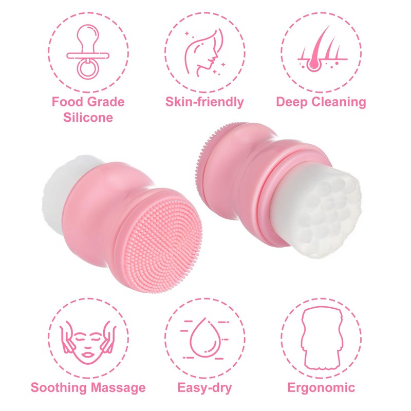 HINZIC 2 Pack Manual Facial Cleansing Brush, 2 in 1 Silicone Double Side Face Scrubber, Skin Friendly Waterproof Soft Bristles Exfoliator Cleanser for Makeup Residues Deep Cleansing