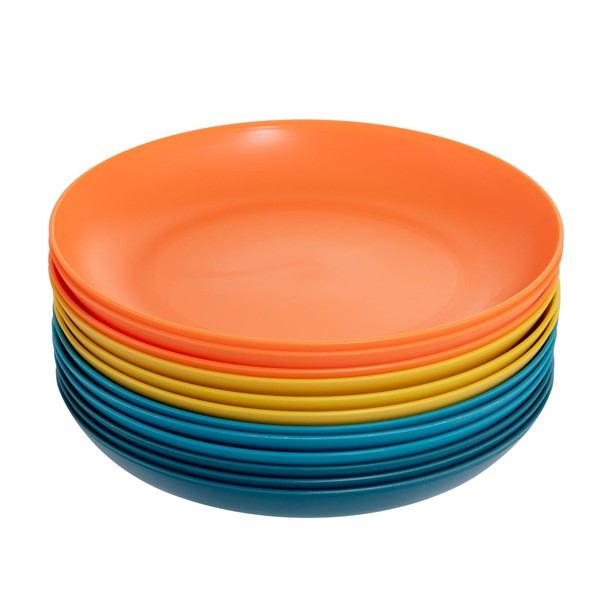Hioasis 12pcs 8inch Plastic Deep Plates Set,Unbreakable Dessert Dinner Plates,Lightweight Reuseable Dinnerware Set,Wheat Straw Plates,Dishwasher & Microwave Safe for Camping,Kitchen,Party