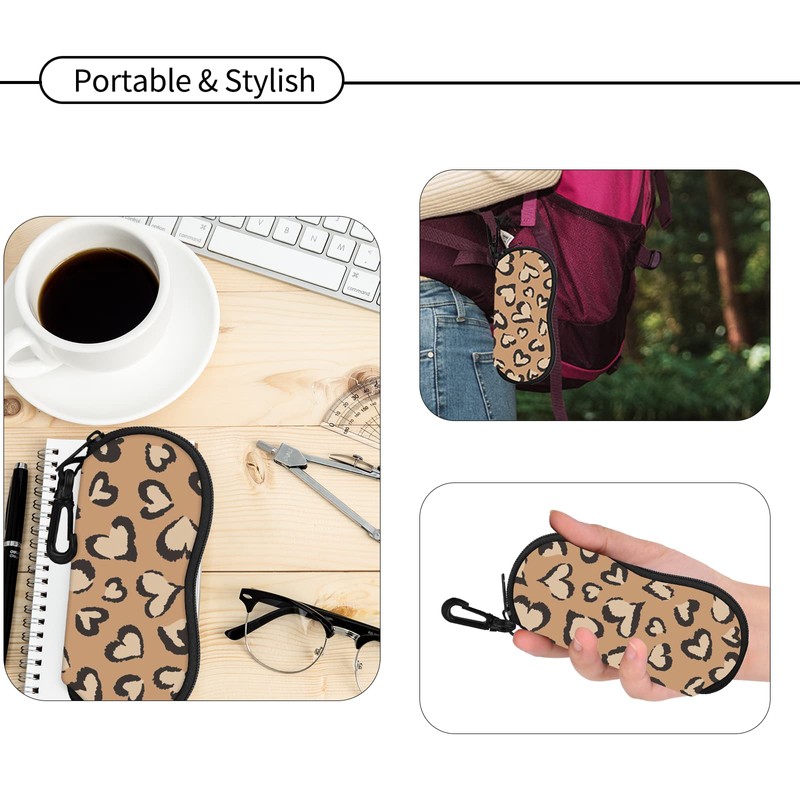 Hion Sunglasses Case Ultra Light Neoprene Zipper Eyeglass Soft Case with Belt Clip(Heart Brown Leopard)
