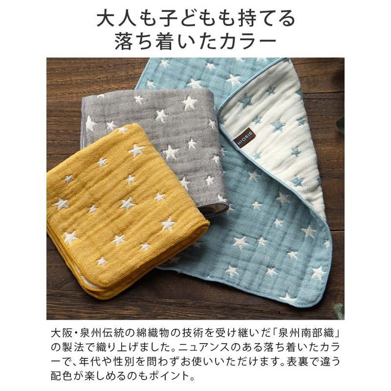 Hiorie 6-ply Gauze Handkerchief Towel, Set of 3, Made in Japan, Little Star Set of 3 Colors