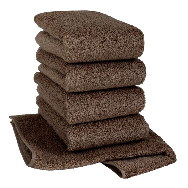 Hiorie Hand Towels, Hotel Style Towels, Classy, Set of 5, Cacao, Fluffy, Finest Super Long Cotton, Instant Absorption, Thick, Senshu Specialty Towel Certified