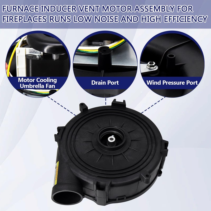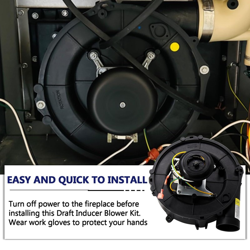 - Easy Installation: Furnace Inducer Vent Motor Assembly for fireplaces runs low noise and high efficiency, turn off power to the fireplace before installing this part. Wear work gloves to protect your hands. Easy installation for DIY enthusiasts and professional installers alike