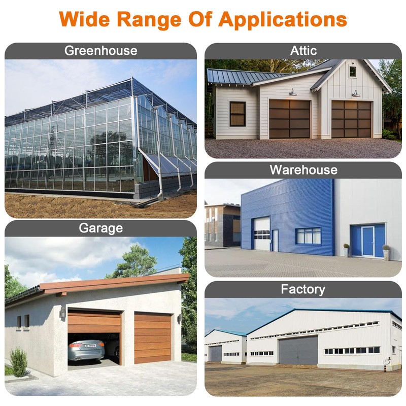 • Quiet Operation: The high speed and excellent performance of the exhaust fan ensures that your room is ventilated quickly and efficiently, so say goodbye to stuffy or humid rooms. Despite the strong airflow, it operates quietly, so you can enjoy a quiet and noiseless environment, and it is ideal for exhausting air and removing dust from attics, warehouses, garages, greenhouses, chicken coops, and workshops