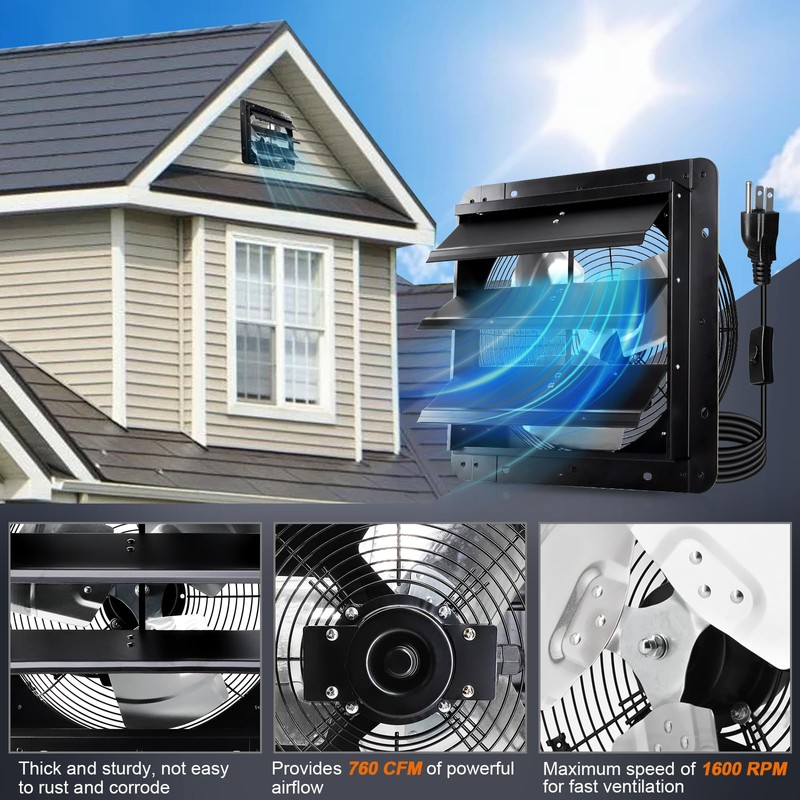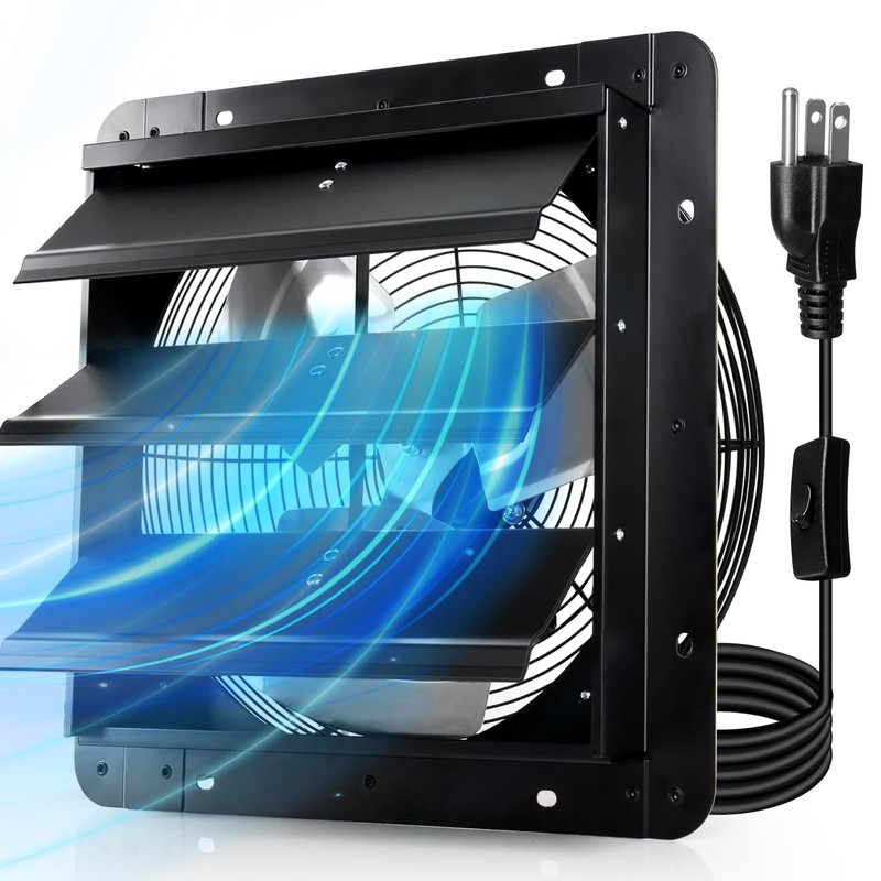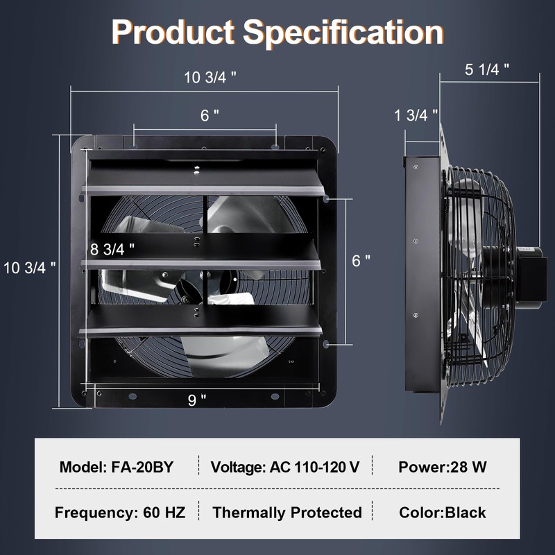 • Automatic Shutter: This wall mounted exhaust fan includes automatic louvers that open and close as the fan operates and can be adjusted for wind speed and ambient conditions, and when not in operation, closure protects the louvered fan from rain, and also prevents debris from entering, while maximizing ventilation