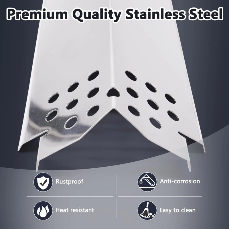 ➤【Flame Tamer Specification】 720-0830x Heat Plate Dimensions: 14 9/16 x 4 3/16''. Material: Stainless Steel. ★ Nexgrill 720-0830x heat shield is made of the premium stainless steel to protect your bbq grill burner and ensure long-lasting use. strong corrosion and heat resistant give you a great and safety barbecue experience.