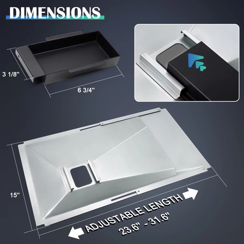 - Grease Tray: Adjustable length between 23.6" to 31.6", width 15''(Fixed), with 5.5"L x 2.6"W x 0.9"H catch pan