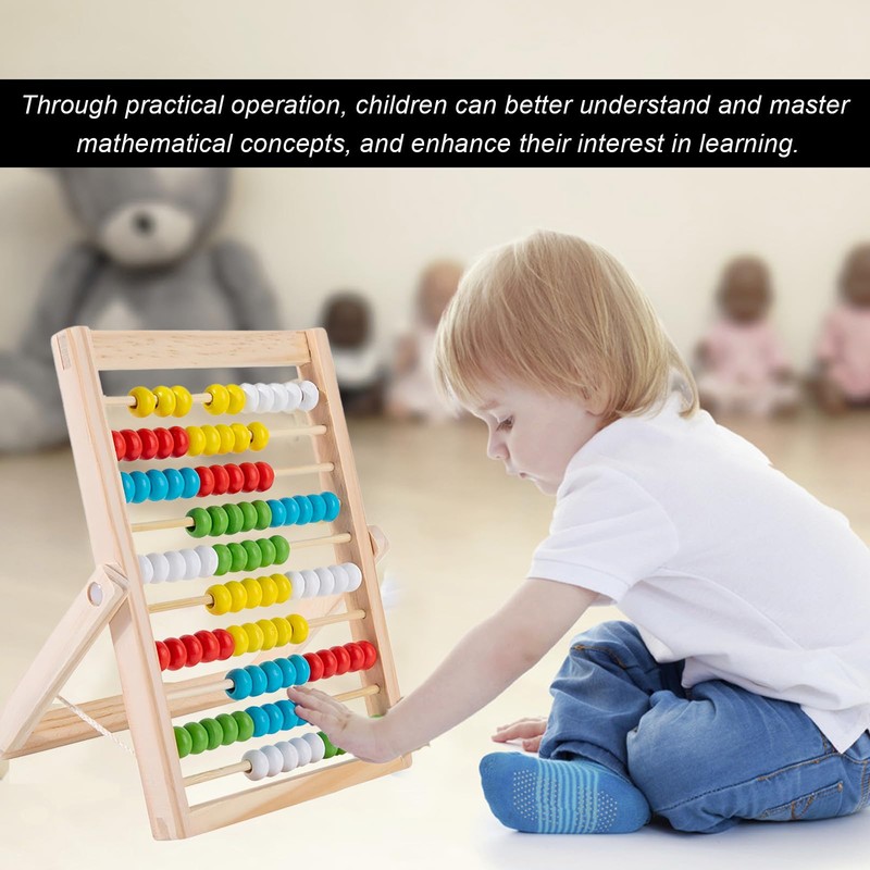 • WOODEN MATERIAL: This children's abacus toys is made of wood, sturdy and durable, wear-resistant and drop-resistant, with strong load-bearing capacity. The wood frame is sturdy and the beads are brightly coloured to attract children's attention.