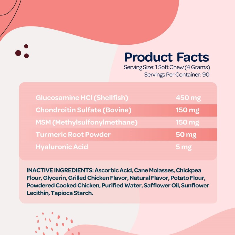 - Snout to Tail Benefits - Our turmeric and glucosamine chews for dogs are a great way to offer hip and joint support for dogs of all ages while also supporting daily activity mobility and flexibility