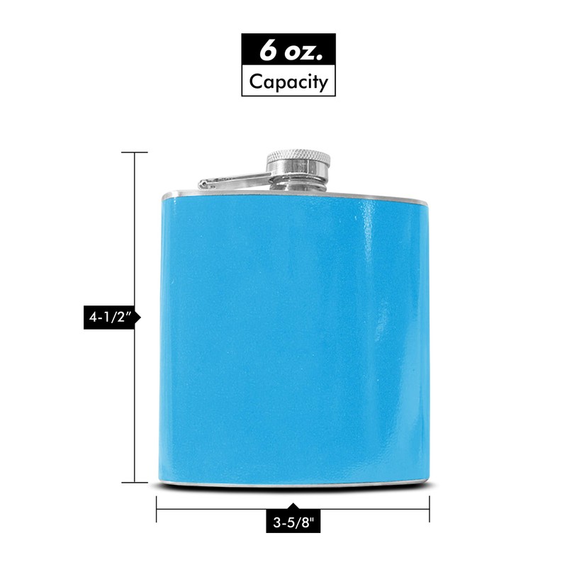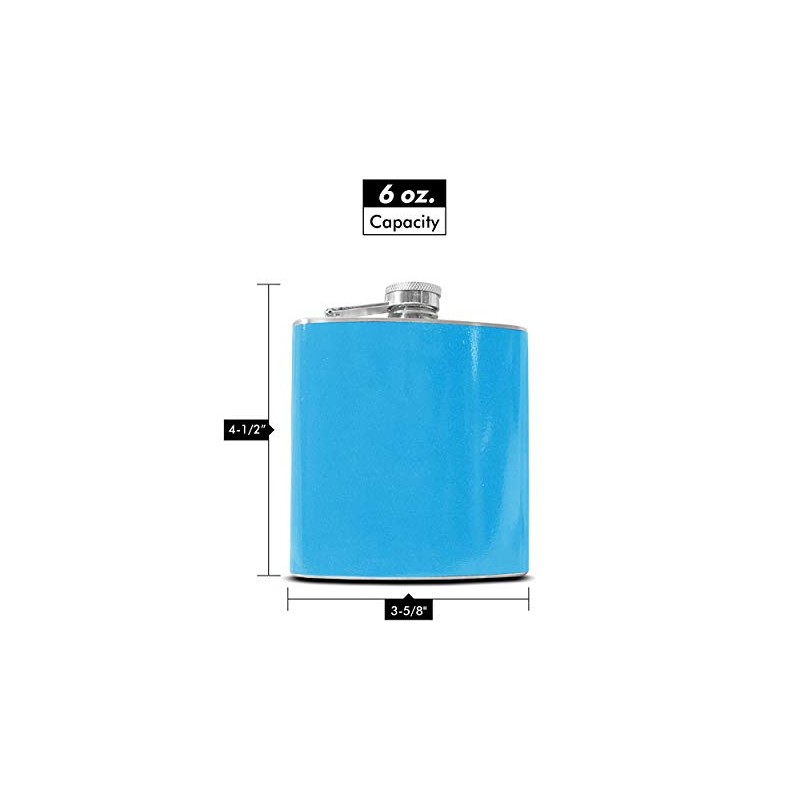 Quench your thirst when you're at the game or on the move with a nip or three from our popular baby blue 6 oz stainless steel hip-pocket flask! Never worry about spills thanks to this flask's rugged screw-on metal cap. Inside, heavy- gauge steel that's laser-welded makes this container a leak-proof winner as well as a fantastic gift for anyone for any occasion!