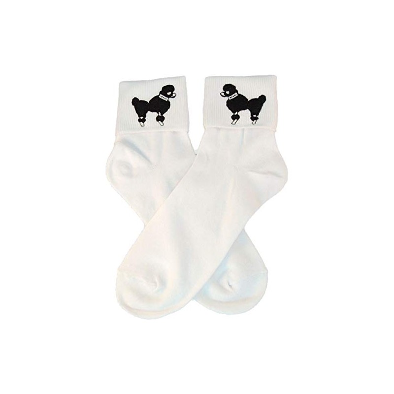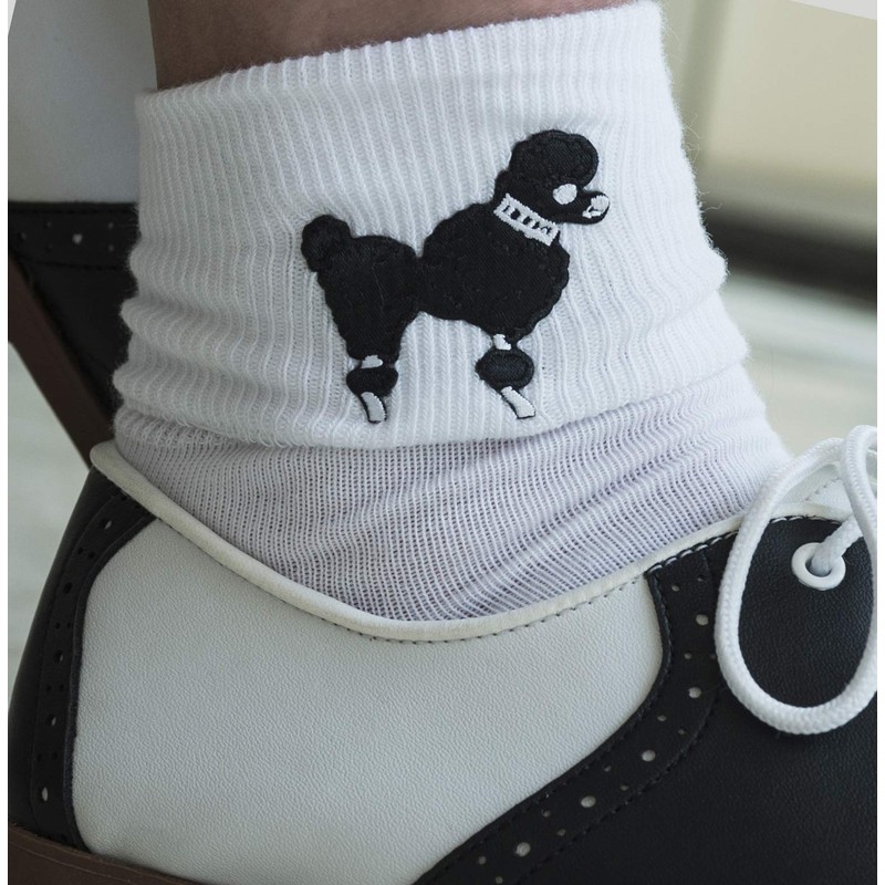 Hip Hop 50s Shop Womens Bobby Sock With Black Poodle Applique- Adult Size White with Black
