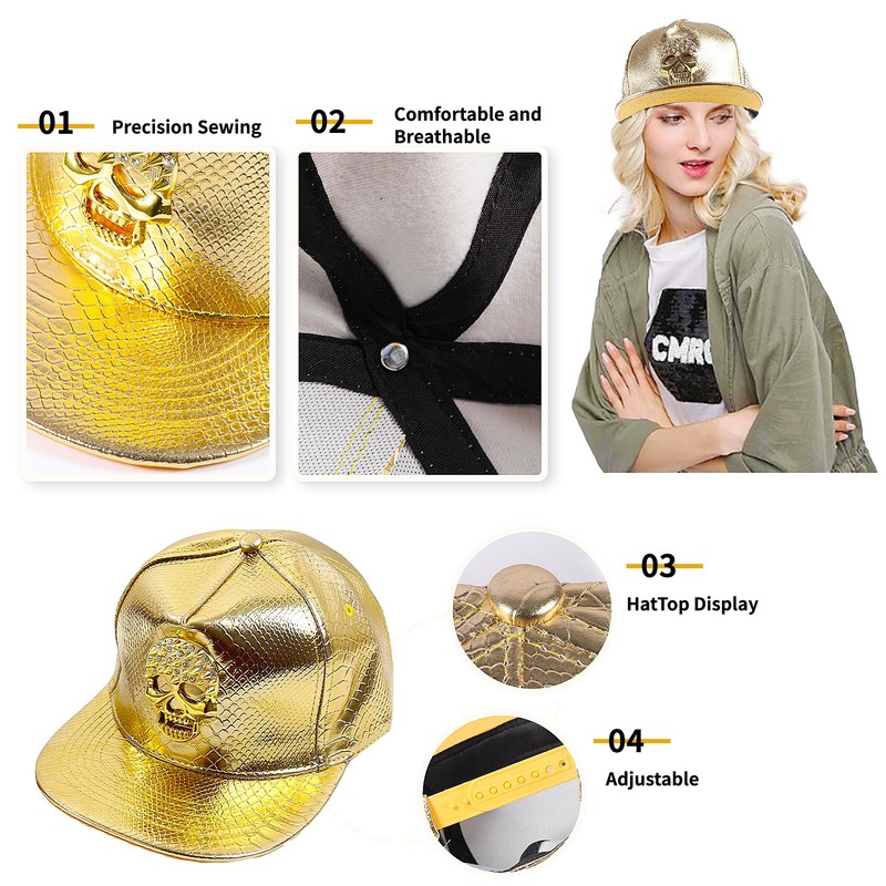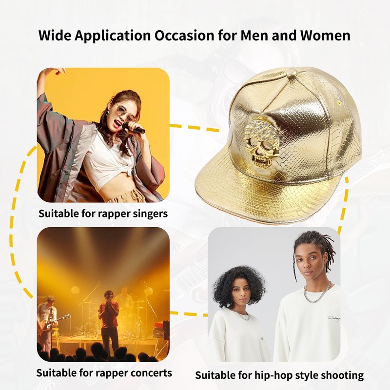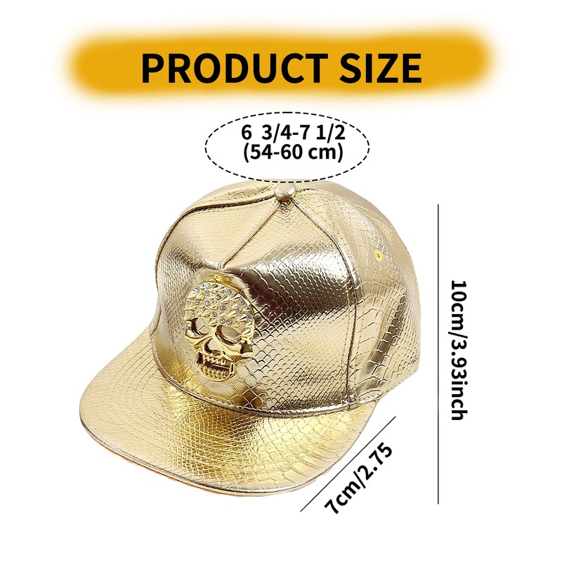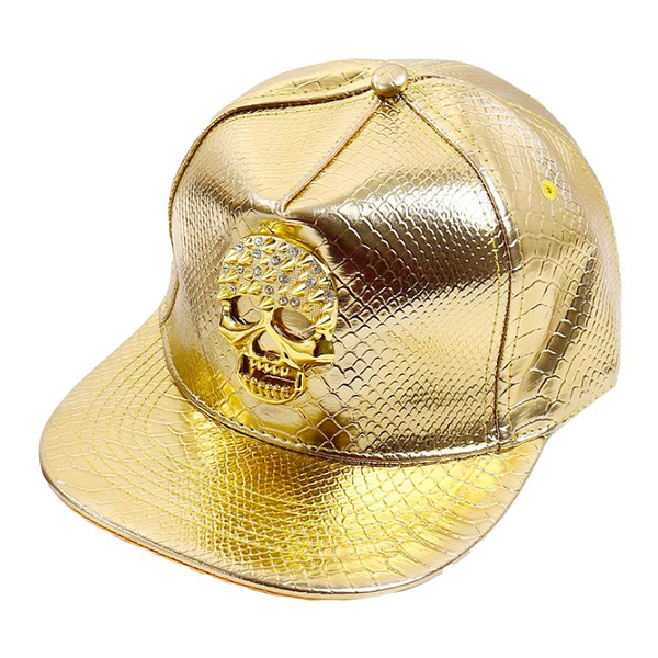 Hip Hop Hat Flat-Brimmed Rock Cap Adjustable Baseball Caps Men Women (US, Numeric, 6 3/4, 7 1/2, Skull -Gold)
