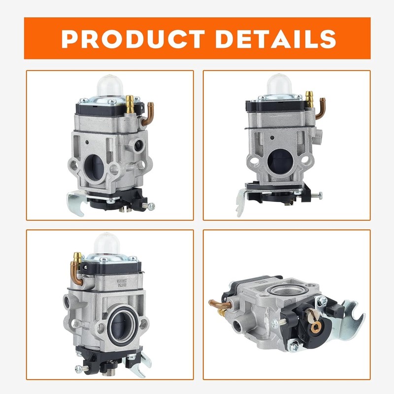 - [QUALITY MATERIAL, QUALITY CARBURETOR]: Resistant to heat, corrosion, and wear by utilizing brass components, composite rubber diaphragms, and anodized aluminum carburetor body.