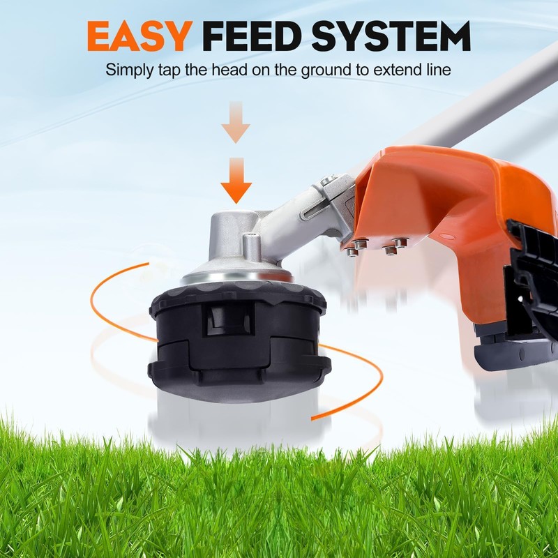 - [EASY FEED]: Simply tap the head on the ground to extend the line, eliminating the need to stop and manually adjust it. This reduces downtime, allowing you to get more done in less time.