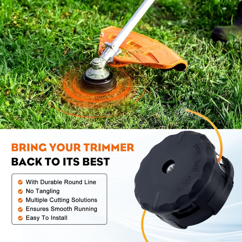 - [DURABILITY AND VERSATILE CUTTING]: The reliable bump feed system, combined with durable round trimmer line, effectively cuts through various types of vegetation. Its smooth, circular design makes it resistant to breakage, especially when cutting against hard surfaces like rocks or concrete.