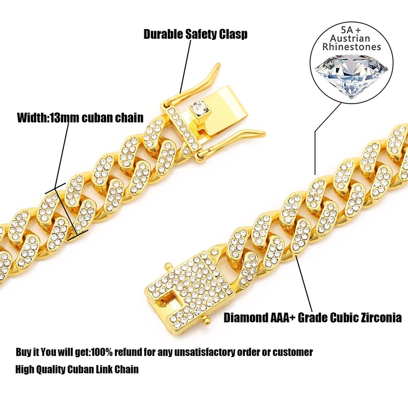 - This chain is constructed from high-quality alloy ,The cuban chain is ensures durability, resistance to tarnishing, and a luxurious feel against your skin,the stones are meticulously set to create an icy effect, making it a true showstopper. Embrace the bling bling culture and stand out from the crowd with confidence!