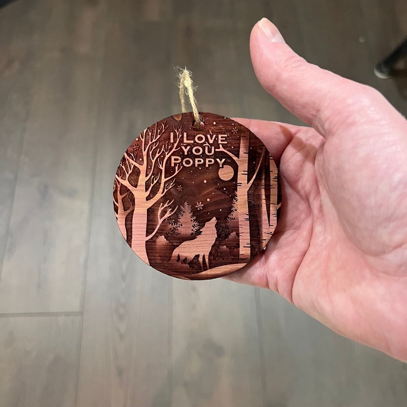 HipFlaskPlus Winter Wolf I Love you Poppy - cedar ornament