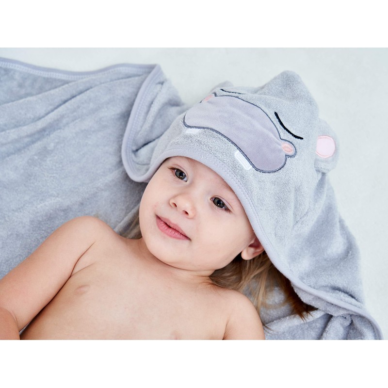 HIPHOP PANDA Hooded Towel - Rayon Made from Bamboo, Bath Towel with Bear Ears for Newborn, Babie, Toddler, Infant - Absorbent Large Baby Towel - Hippo, 37.5 x 37.5 Inch