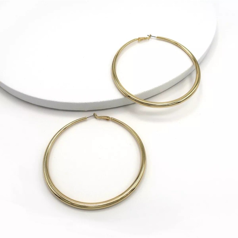 Hiphopstylist Women's high Fashion 14K Gold Filled Brass Classic Hoop Earrings 85mm / 3.25inch