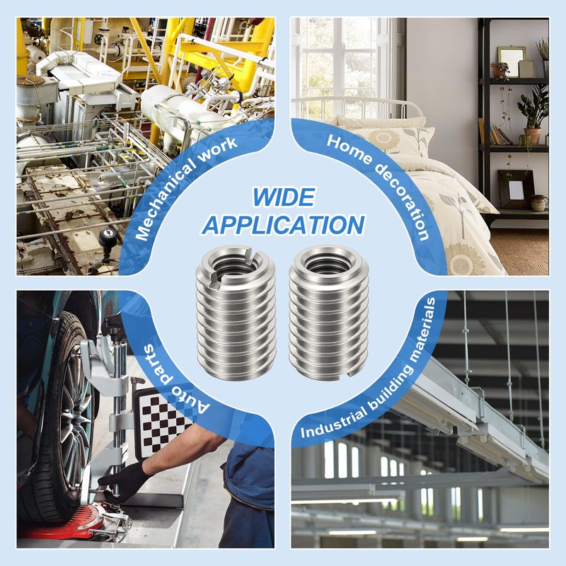 • Application: The thread reducer are essential for fixing damaged or mis-threaded holes, commonly used with screws and bolts in industrial fastening systems. Perfect for applications in aviation, automotive, electronics, computer hardware, lighting fixtures, mechanical equipment, and radiators. Durable and reliable, these nuts offer long-lasting solutions across multiple industries.