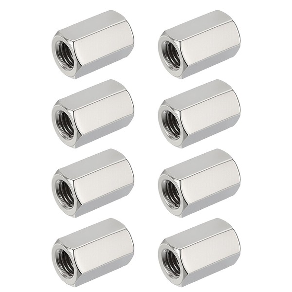 HiPicco Hex Coupling Nuts, M12 x 1.0-Pitch UNF 20mm/0.79" Length, 8 Pack 304 Stainless Steel Rod Coupling Nut for Threaded Rods & Studs