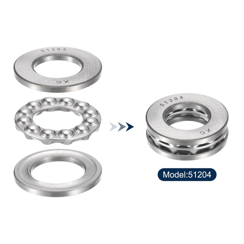 HiPicco Thrust Ball Bearings, 4pcs 51204 Plane Axial Ball Bearing 3-in-1, 20m...