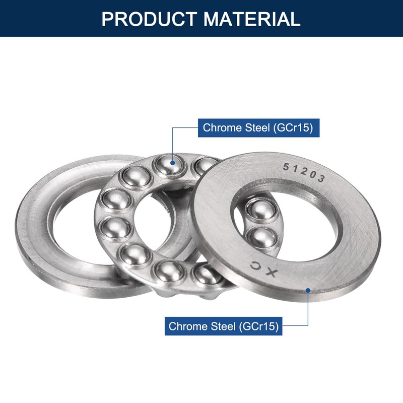 • [APPLICATION] - Thrust ball bearings, composed of bearing balls supported in a ring, can be used in low thrust applications where there is little axial load, such as oven turntable, jack, pump, rotating applications, machine tools, automobiles, etc.