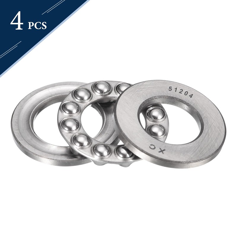 HiPicco Thrust Ball Bearings, 4pcs 51204 Plane Axial Ball Bearing 3-in-1, 20mm x 40mm x 14mm Chrome Steel ABEC3 Single Row Roller