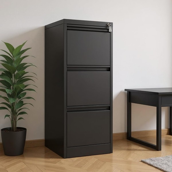 Hipicute 3 Drawer File Cabinet with Lock, Vertical File Organizer for Home Office, Living Room, Steel Lockable Storage Drawer Letter Size/a4/Legal Files Black
