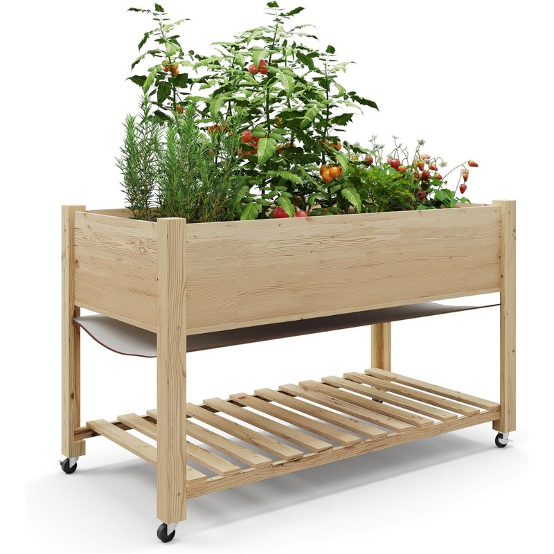 Hipicute Gardening 48x24x32-Inch Wooden Raised Garden Bed with Legs, with Bed Liner and Bottom Shelf for Flowers, Veggies, Herbs, Great for Outdoor Patio, Deck, Balcony, Backyard,Natural