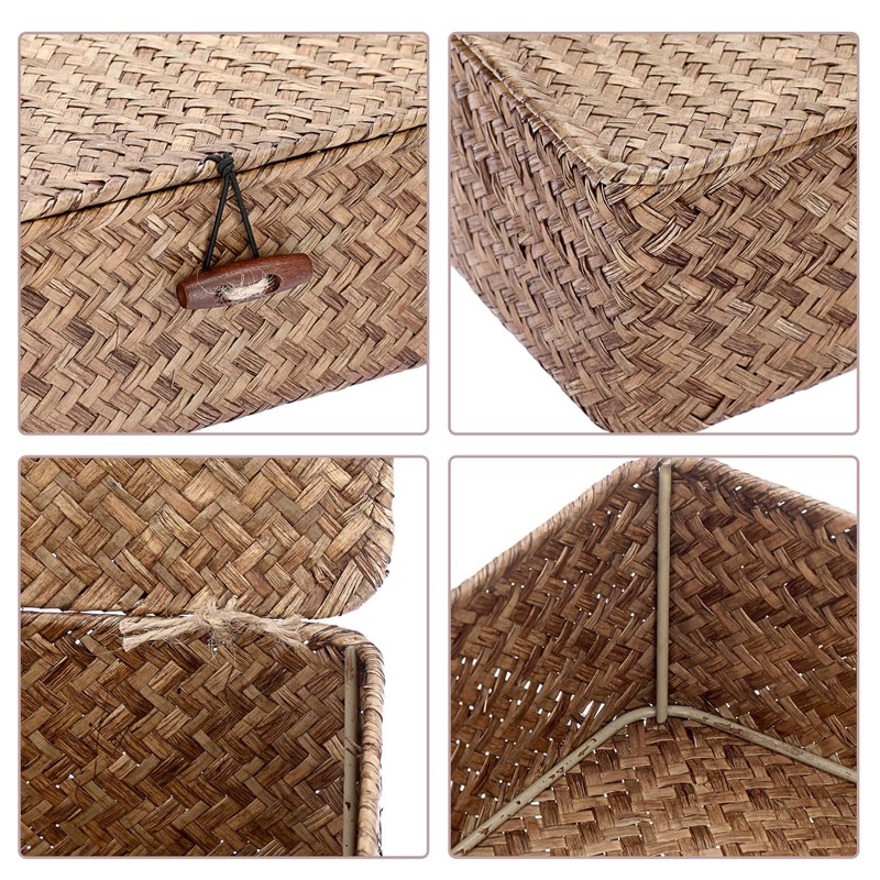 - Space-saving: Dimension of the baskets 14.6" x 13" x 3.66", Packing included 1pcs seagrass basket box(Accessories are not included)