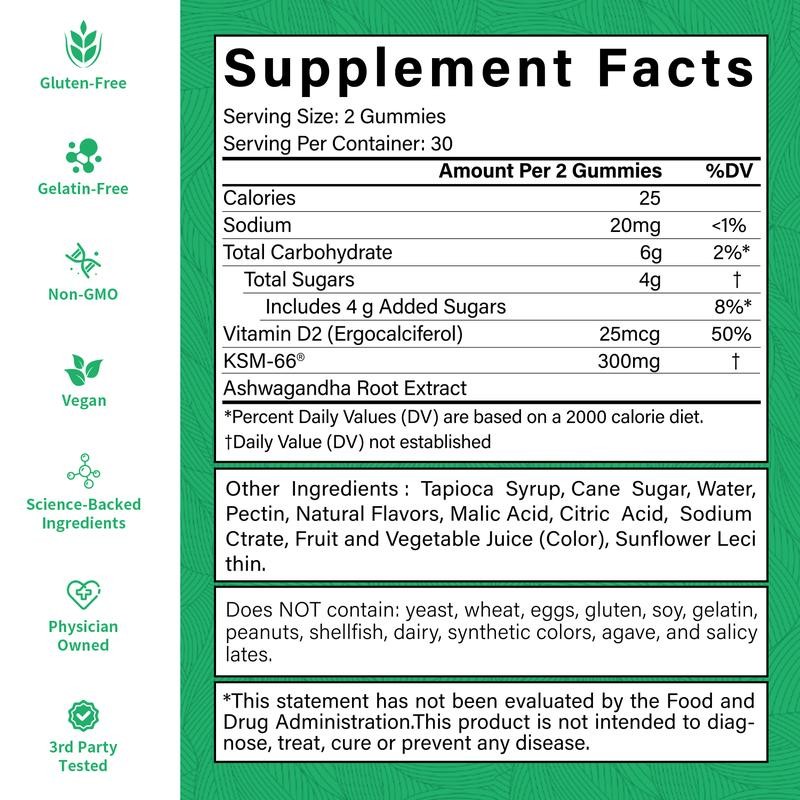 HiPlus Ashwagandha Gummies with Vitamin D feature KSM-66®, the world’s leading Ashwagandha extract, delivering a highly concentrated whole root formula to help you relax, restore, and unwind. Each gummy is vegan, plant-based, non-GMO, gluten-free, and gelatin-free, crafted for convenient daily supplementation.