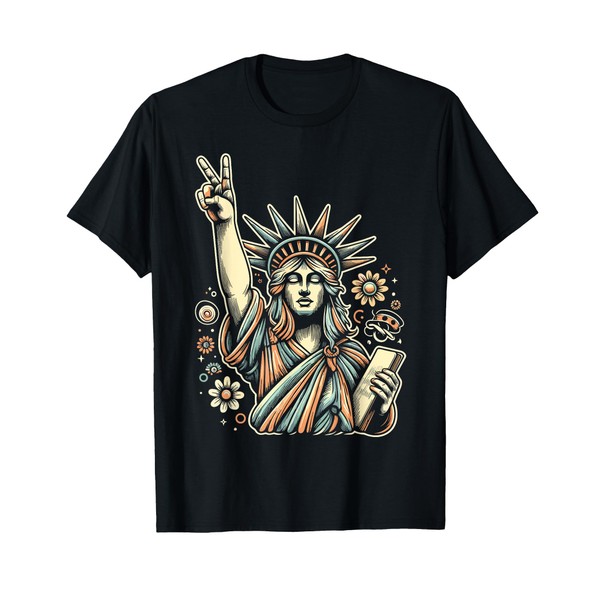 Hippie Statue of Liberty 4th of July Groovy Outfit Hippie T-Shirt