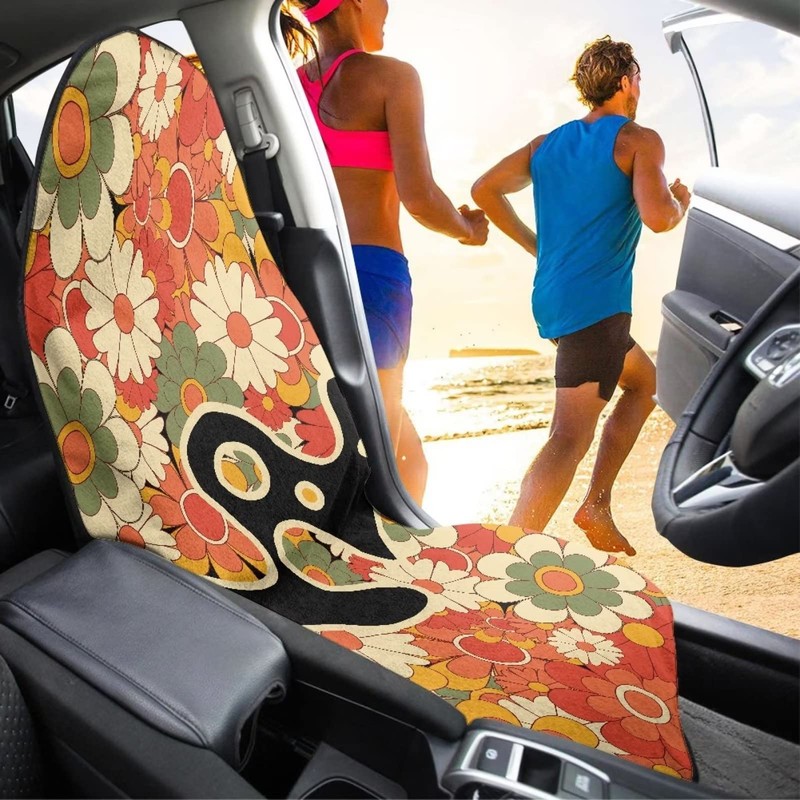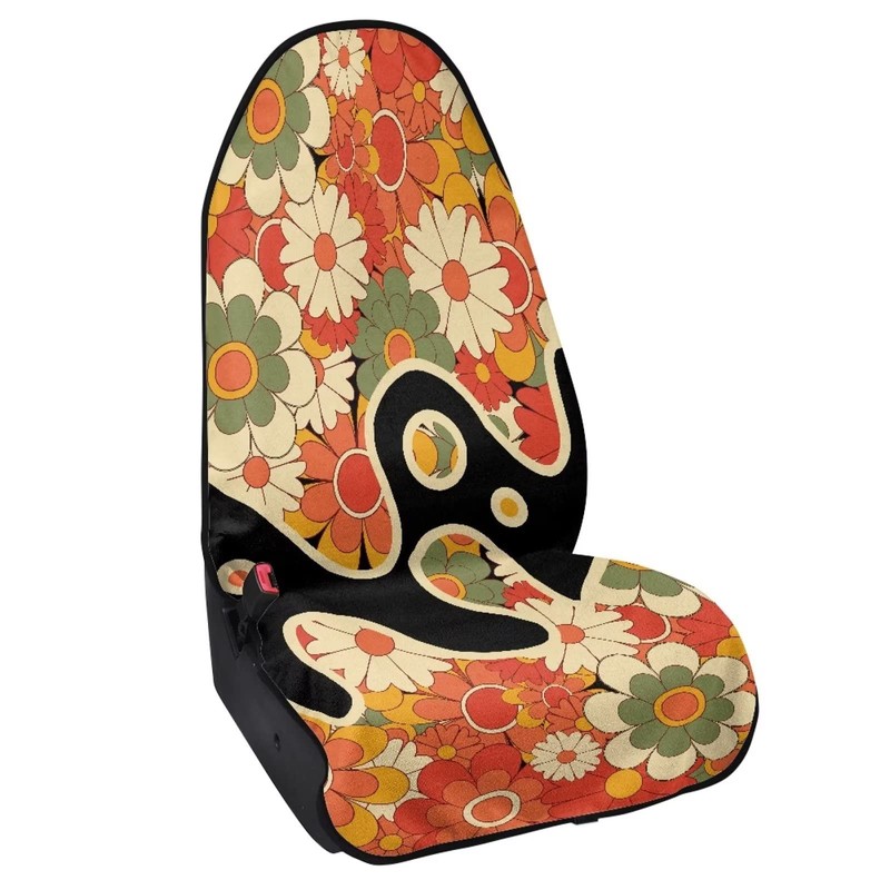 Hippie Style Floral Custom Casual Car Seat Covers Durable Universal Fitted Full Coverage Front Car Seat Protector Soft Breathable Elastic Non Slip All Season Automotive Seat Cover for Women Men