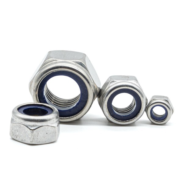 Nyloc nuts feature a nylon collar in the top portion of the nut that locks the nut in place by squeezing the threads of the bolt as the nut is tightened. This friction that is created prevents the nut from loosening. The Nyloc nut is an economic locking nut and ideal in applications where vibration or motion could loosen or undo the nut. The difference between and Type P and a Type T nyloc nut lies in the physical "depth" of the nut. 'P' Type are referred to as 'Full' nuts and 'T' Type are fererred to as 'Thin' nuts.