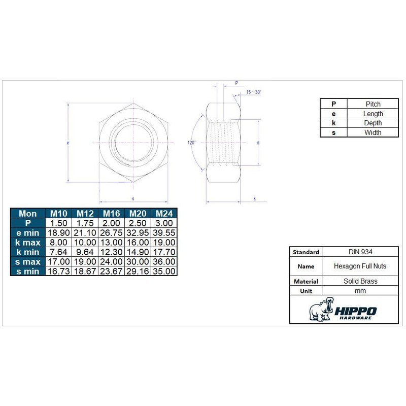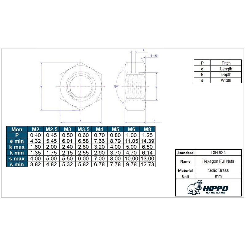 Hippo Hardware M4 (4mm) Solid Brass Hexagon Full Nuts for Bolts & Screws (Pack of 20)