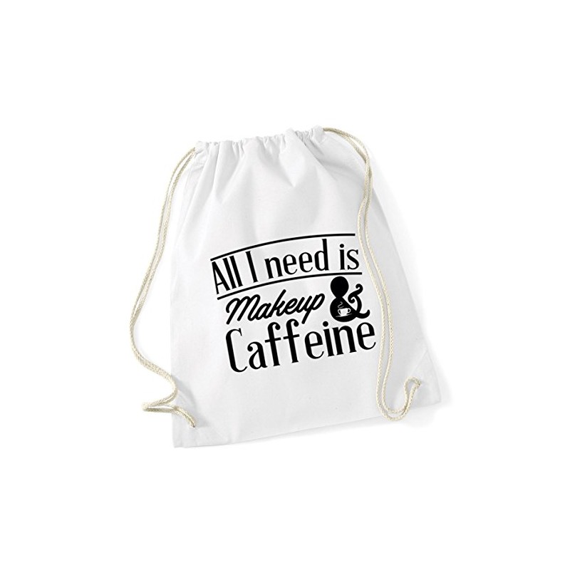 Hippowarehouse All I Need Is Makeup & Caffeine Drawstring Cotton School Gym Bag 37cm x 46cm, 12 litres