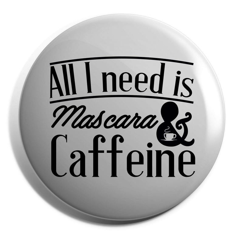 Hippowarehouse All I Need Is Mascara & Caffeine Badge Various Sizes 38mm 50mm 75mm
