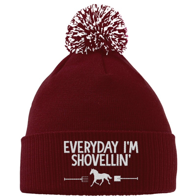 Hippowarehouse Everyday I'm Shovellin' Embroidered Beanie Hat with Bobble Maroon