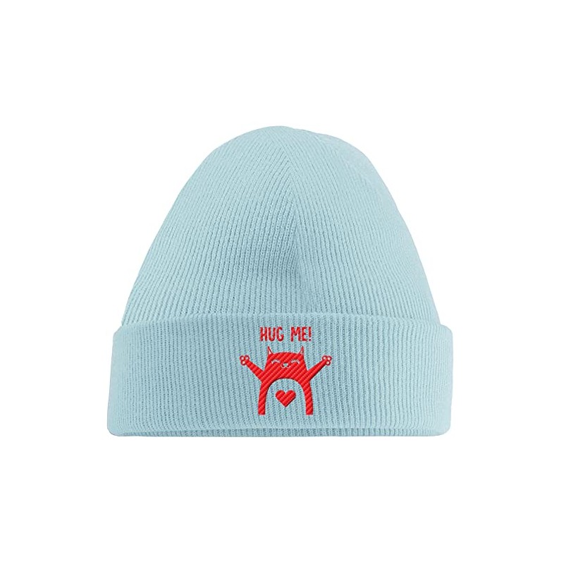 Hippowarehouse Hug me - Cat Embroidered Beanie Hat Blue with Red Stitch
