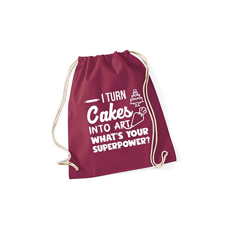 Hippowarehouse I turn cakes into art what's your superpower? Drawstring Cotton School Gym Bag 37cm x 46cm, 12 litres
