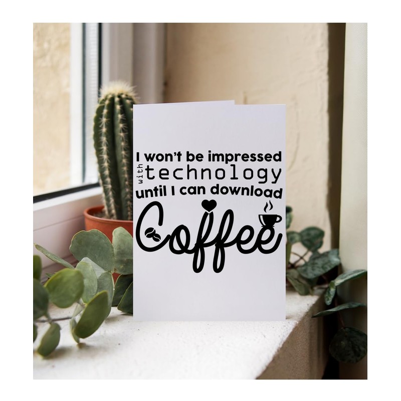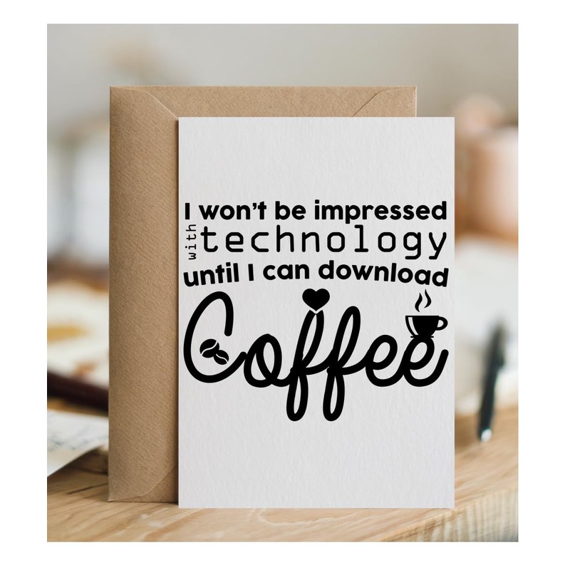 Hippowarehouse I Won't Be Impressed with Technology Until I Can Download Coffee Birthday Card A5 Personalised with envelope for him for her Funny Cards for Men and Women Blank inside option