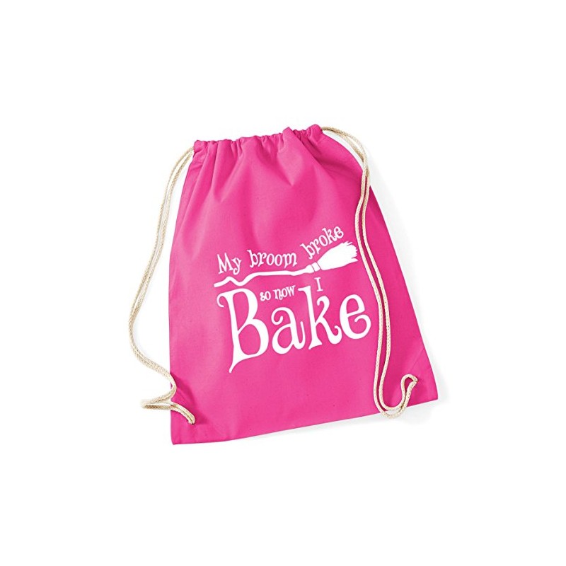 Hippowarehouse My Broom Broke So Now I Bake Drawstring Cotton School Gym Kid Bag Sack 37cm x 46cm, 12 litres