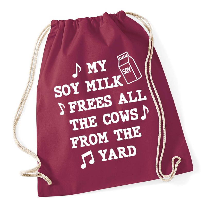 Hippowarehouse My Soy milk frees all the cows from the yard Drawstring Cotton School Gym Bag 37cm x 46cm, 12 litres