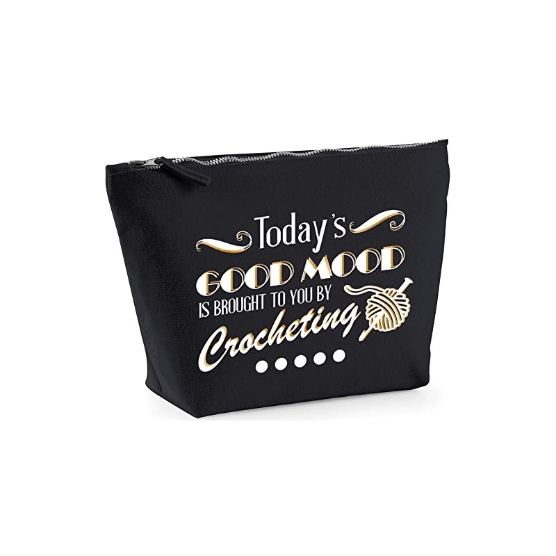 Hippowarehouse Today's Good Mood Is Brought To You By Crocheting printed make up cosmetic wash bag 18x19x9cm