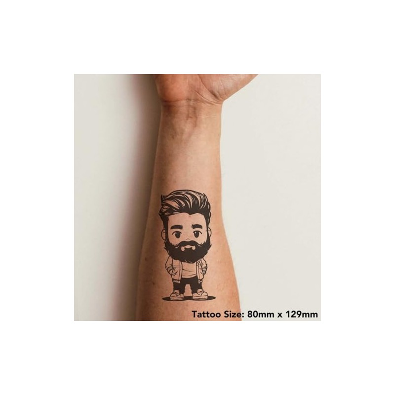'Hipster Chibi Man' Temporary Tattoo - Water Resistant, Skin-Safe, Non-Toxic Transfer (TO00083357)