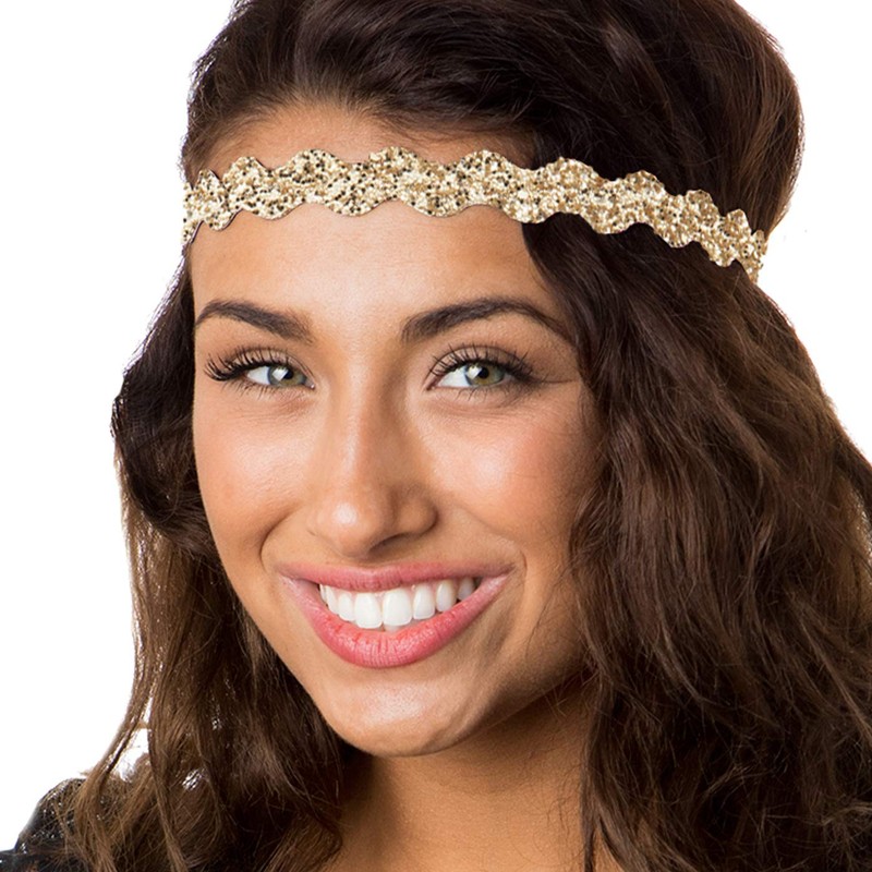 Hipsy REGULAR Size, Adjustable No Slip Sparkly Bling Mixed 2pk Headbands for Women Girls & Teens (Bling Glitter Mixed Gold)