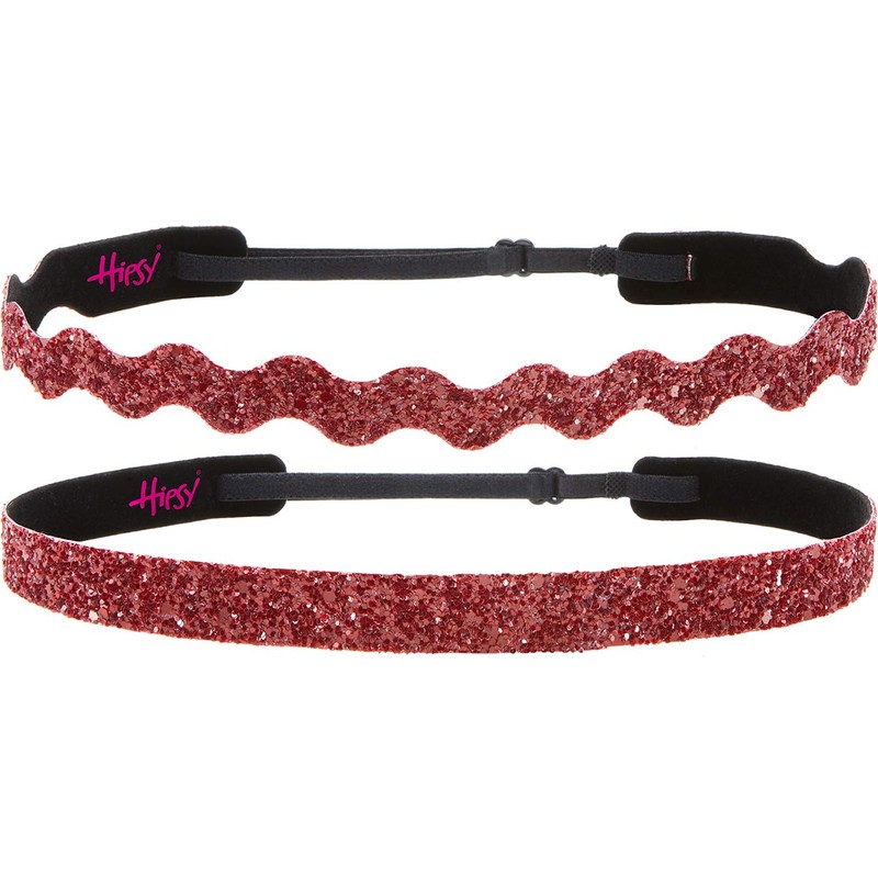 Hipsy REGULAR Size, Adjustable No Slip Sparkly Bling Mixed 2pk Headbands for Women Girls & Teens (Bling Glitter Mixed Ruby Red)