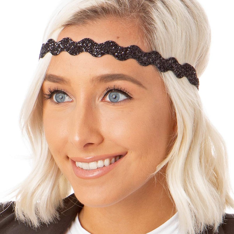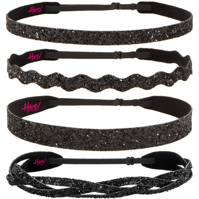 Hipsy Regular Size, Adjustable No Slip Sparkly Bling Mixed 4pk Headbands for Women Girls & Teens (Bling Glitter Mixed Black)