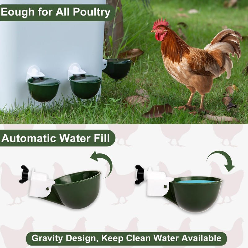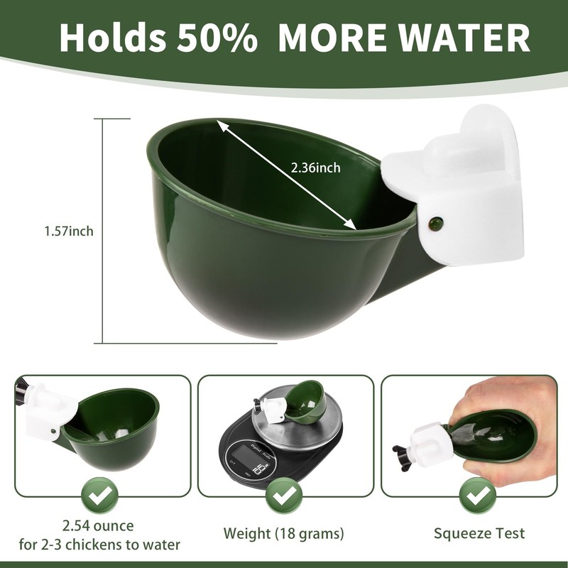 - 🐔NO Less Design: Each cup features a leak-free design that ensures a steady supply of water for your flock. Rubber sealing gaskets prevent leaks and ensure clean water is always available.
