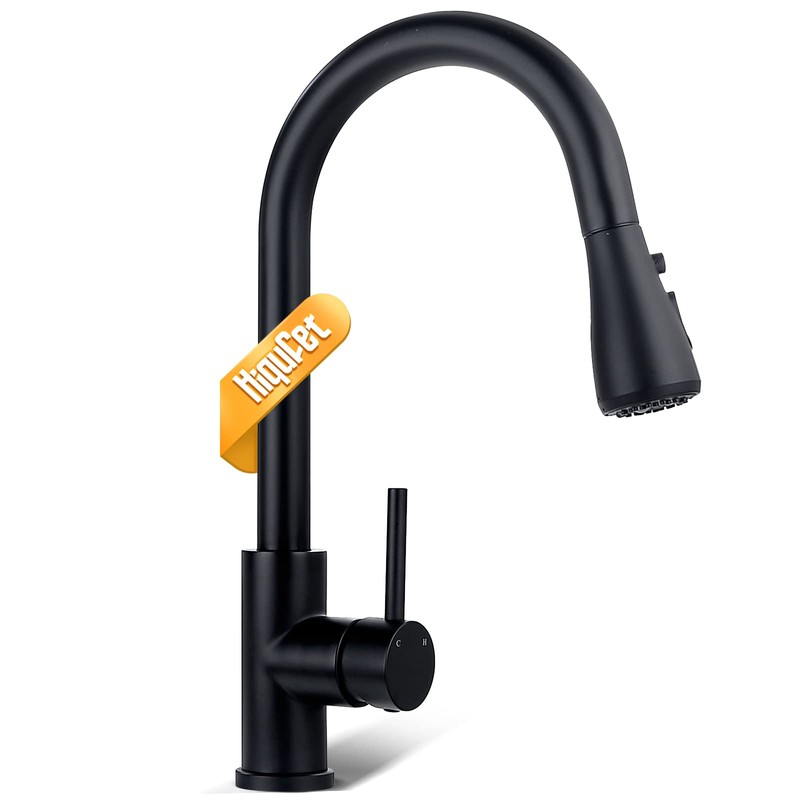 Hiqufet Hiqufet Black Kitchen Faucet with Pull Down Sprayer, Kitchen Sink Faucet with Pull Out Sprayer Fingerprint Resistant Single Hole Single Handle Stainless Steel Rv Kitchen Faucets Matte Black